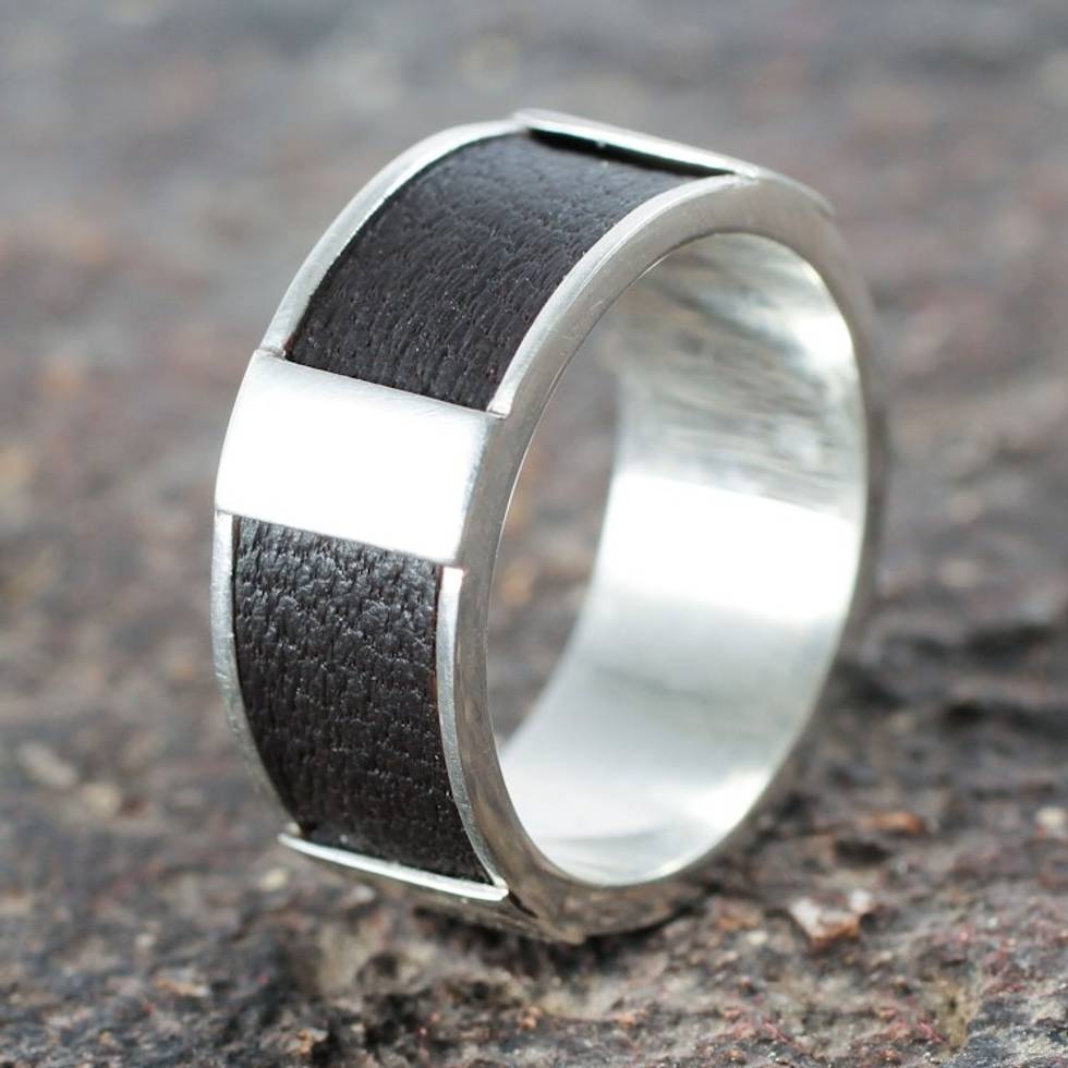 Artisan Crafted Leather Accent Sterling Silver Band Ring 'Leather Minimalist' Item ID: 2670122470