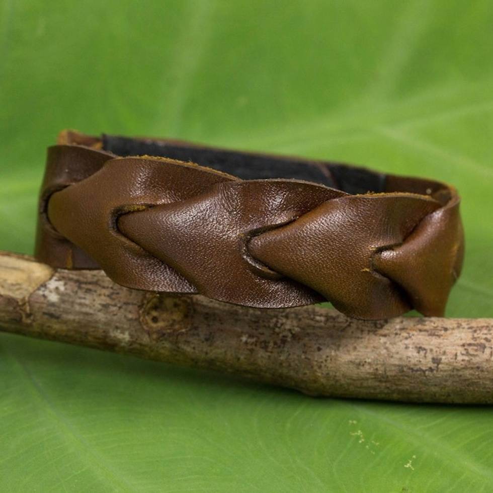 Artisan Crafted Leather Bracelet from Thailand 'On My Way' Item ID: 2671802411
