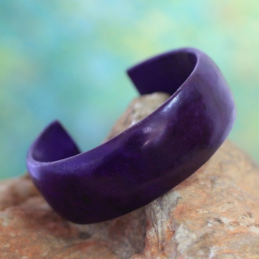 Artisan Crafted Leather Cuff Bracelet 'Annula in Purple' Item ID: 2671806927