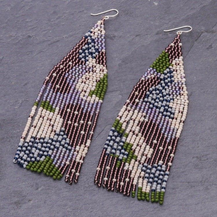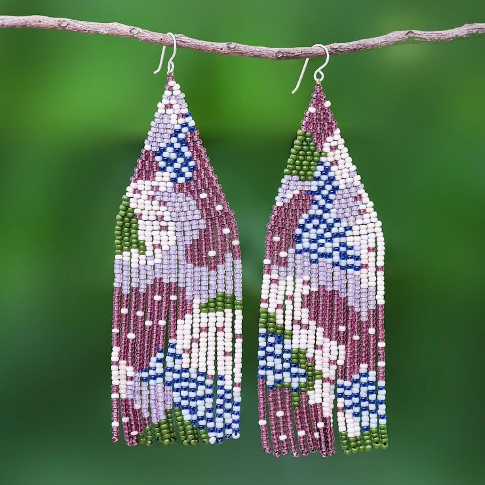 Artisan Crafted Long Beaded Waterfall Earrings in Purple 'Amazing Waterfall in Purple' Item ID: 2671799846