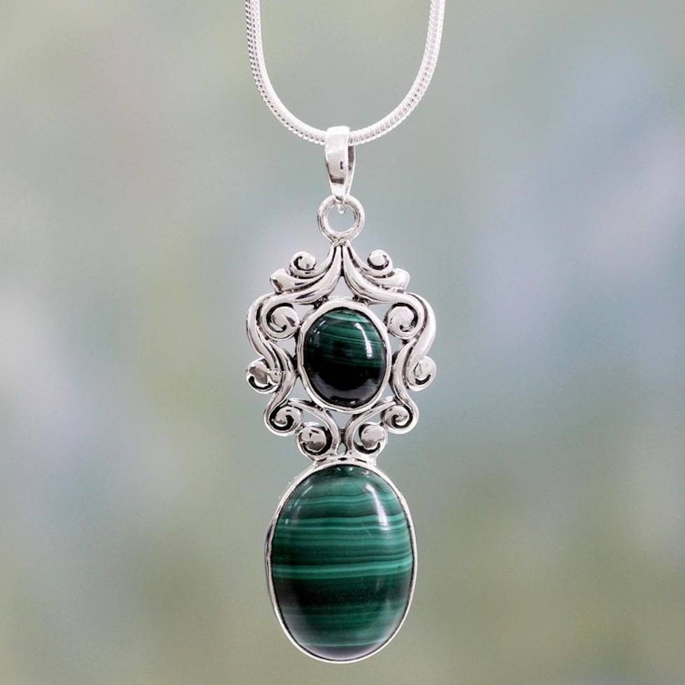 Artisan Crafted Malachite and Sterling Silver Necklace 'Queen of the Forest' Item ID: 2669925539