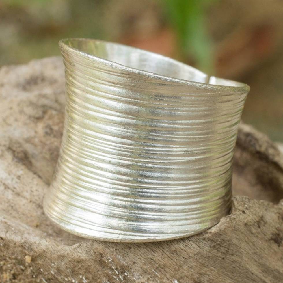 If you are trying to find that bold ring that chants beauty, beauty beauty....look no further Achara is so talented and has created yet another enchanting piece in "The Silver Sun." I also purchased the "Hill Tribe Sun." I wanted a silver cuff style ring, that I could wear on my middle finger and that made my hand pop with a sassy kind of elegance.....and so I had to buy two of Achara's cuff rings each unique in their own way. With the silver sun ring the design focuses on the front and the Hill Tribe Sun not only has design on front but on the back where the cuffs meet....what a fantastic idea n creation. I luv how the ring doesn't slide around, it literally hugs my finger securely and with comfort. Money well spent, truly a gorgeous style Achara thx U!!!!!