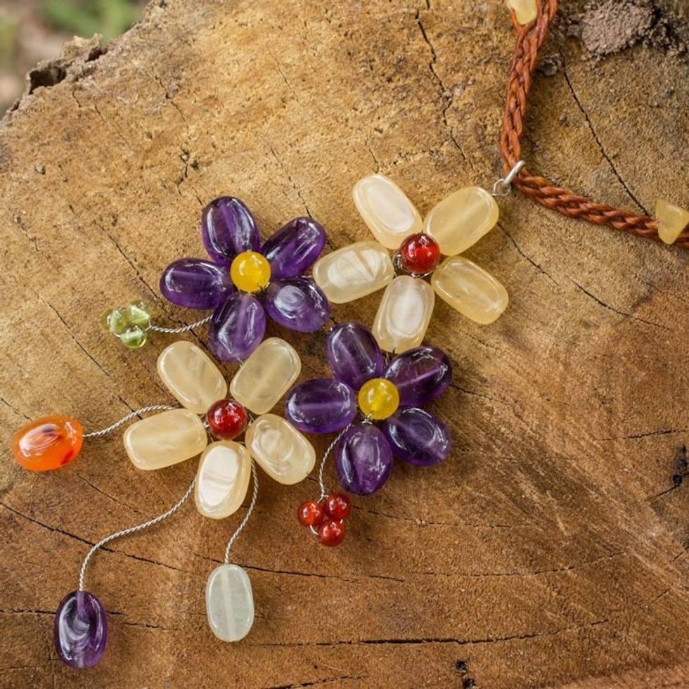 Artisan Crafted Multi-gemstone Flower Necklace 'Twilight Bouquet' Item ID: 2671803133