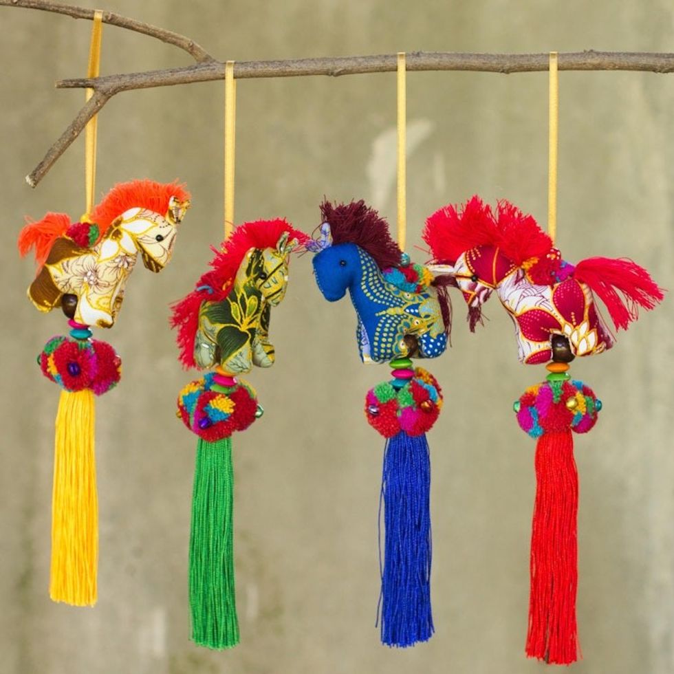 Artisan Crafted Multicolor Thai Cotton Horse Ornaments 4 'Happy Thai Horses' Item ID: 2669897372