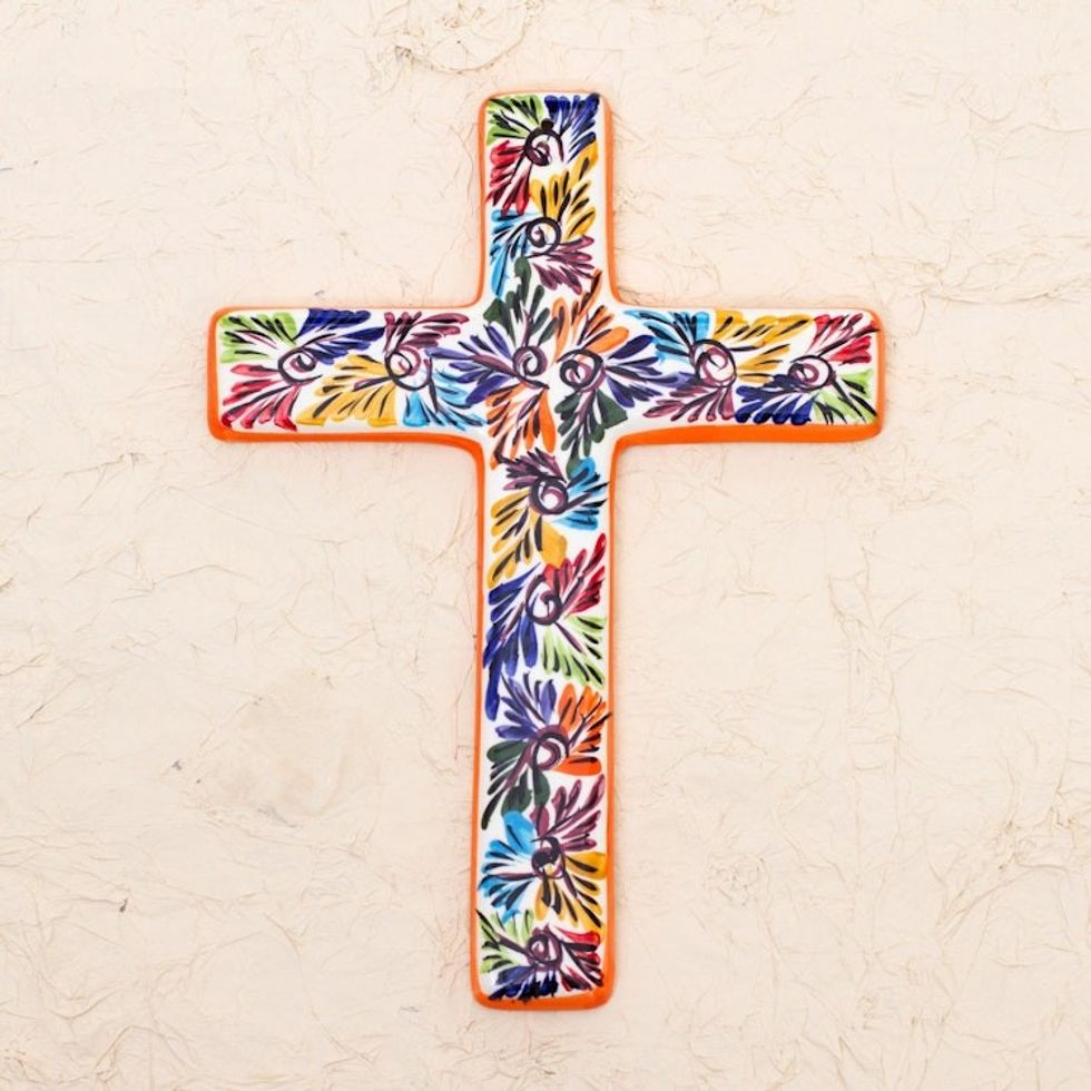 Artisan Crafted Multicolored Ceramic Wall Cross from Mexico 'Spiritual Fireworks' Item ID: 2669897685