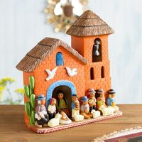 Artisan Crafted Nativity Scene Ceramic Sculpture from Peru 'Birth in the Bell Tower' Item ID: 2671690881