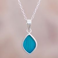 Artisan Crafted Natural Leaf Necklace 'Nature's Gem in Aqua' Item ID: 2671820236
