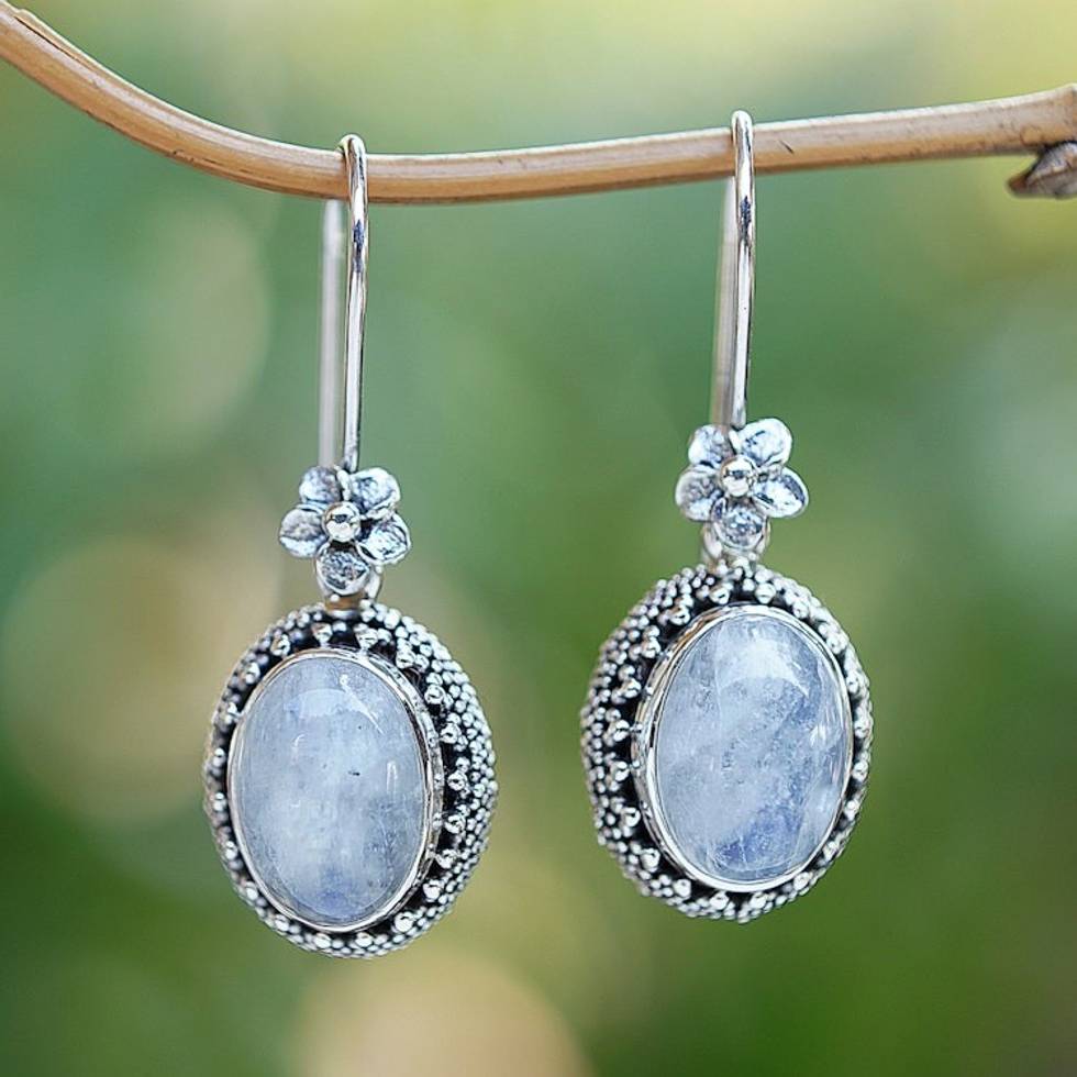 Artisan-Crafted Natural Rainbow Moonstone Dangle Earrings 'Misty Essence' Item ID: 2671583145