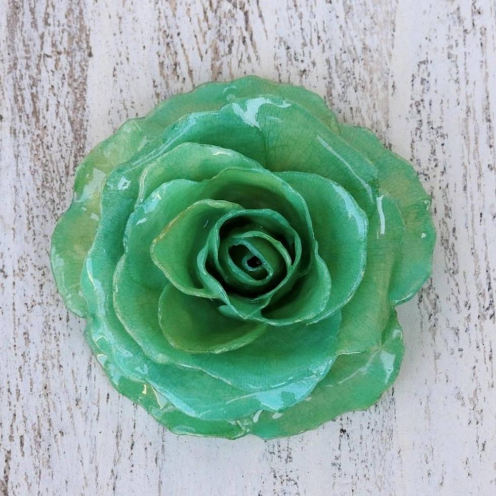 Artisan Crafted Natural Rose Brooch in Green from Thailand 'Rosy Mood in Green' Item ID: 2671801053