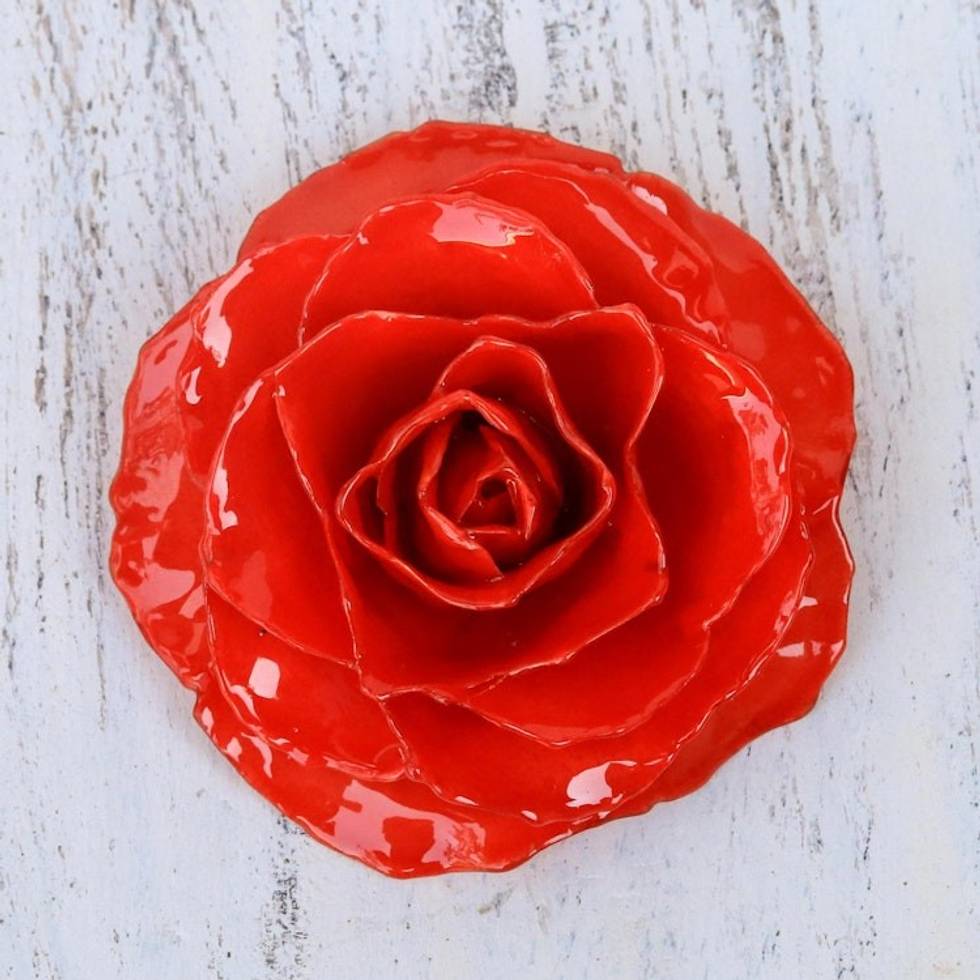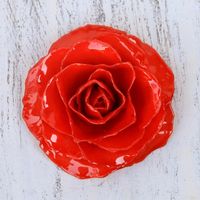 Artisan Crafted Natural Rose Brooch in Red from Thailand 'Rosy Mood in Red' Item ID: 2669926401