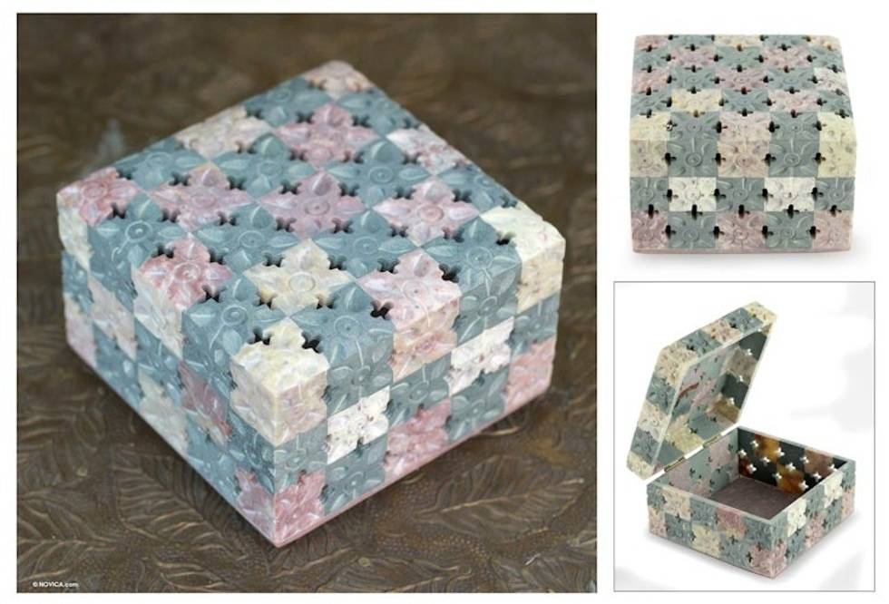 Artisan Crafted Natural Soapstone Decorative Box 'Bed of Flowers' Item ID: 2669924940