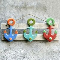 Artisan Crafted Nautical Theme Wooden Coat Rack from Bali 'Three Anchors' Item ID: 2671702021