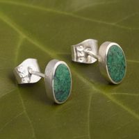 Artisan Crafted Oval Chrysocolla Earrings 'Long Run' Item ID: 2671691305
