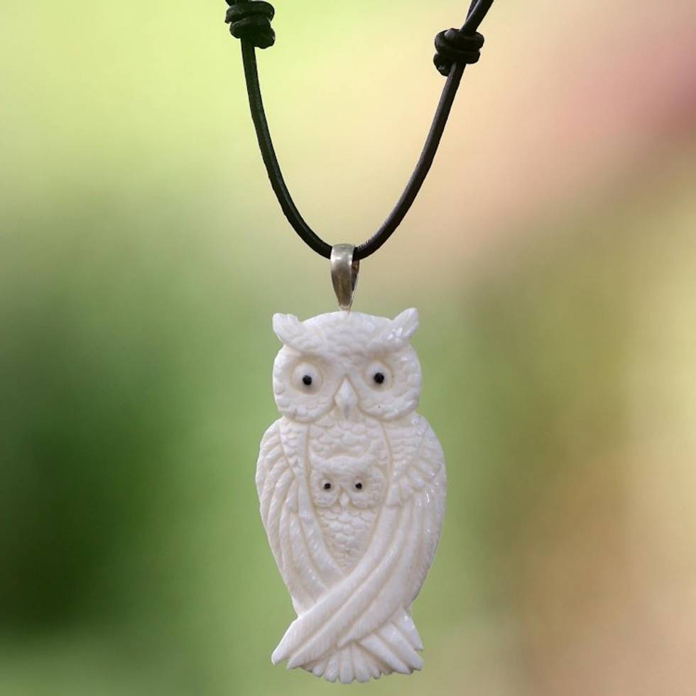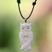 Artisan Crafted Owl Family Pendant on Leather Cord Necklace 'White Owl Family' Item ID: 2669920562