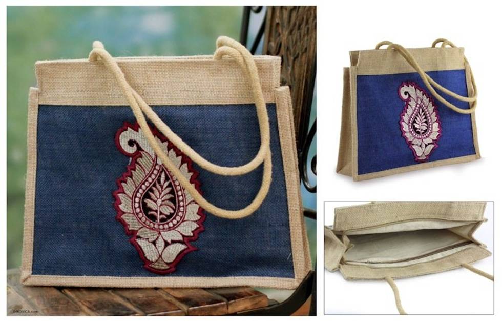 Artisan Crafted Paisley Jute Shoulder Bag 'Indian Paisley' Item ID: 2669956385
