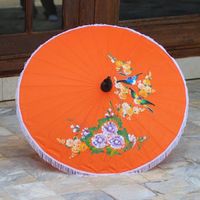 Artisan Crafted Parasol in Orange with Birds and Flowers 'Birds and Flowers on Orange' Item ID: 2676652071
