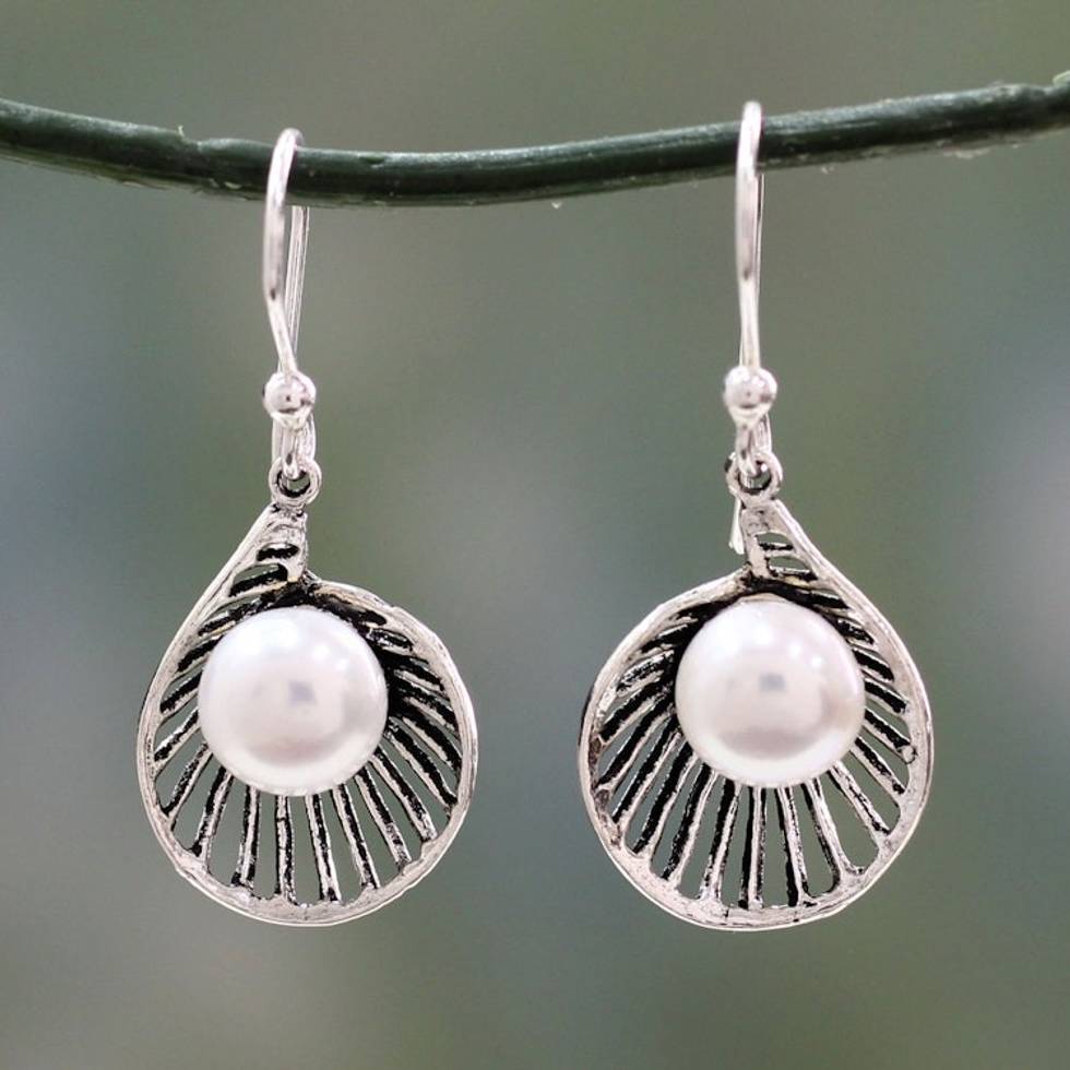 Artisan Crafted Pearl and Sterling Silver Earrings 'Oyster Treasure' Item ID: 2671793970