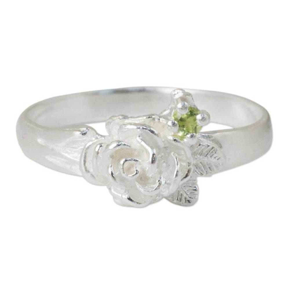 Artisan Crafted Peridot Floral Ring from Thailand 'Chiang Rai Camellia' Item ID: 2676653237