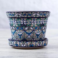 Artisan Crafted Plant Pot and Saucer in Blue and Green 'Guanajuato Azul' Item ID: 2669897923