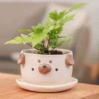 Artisan-Crafted Pug Dog-Themed Ceramic Flower Pot and Saucer 'Pug Blossoming' Item ID: 2671655644