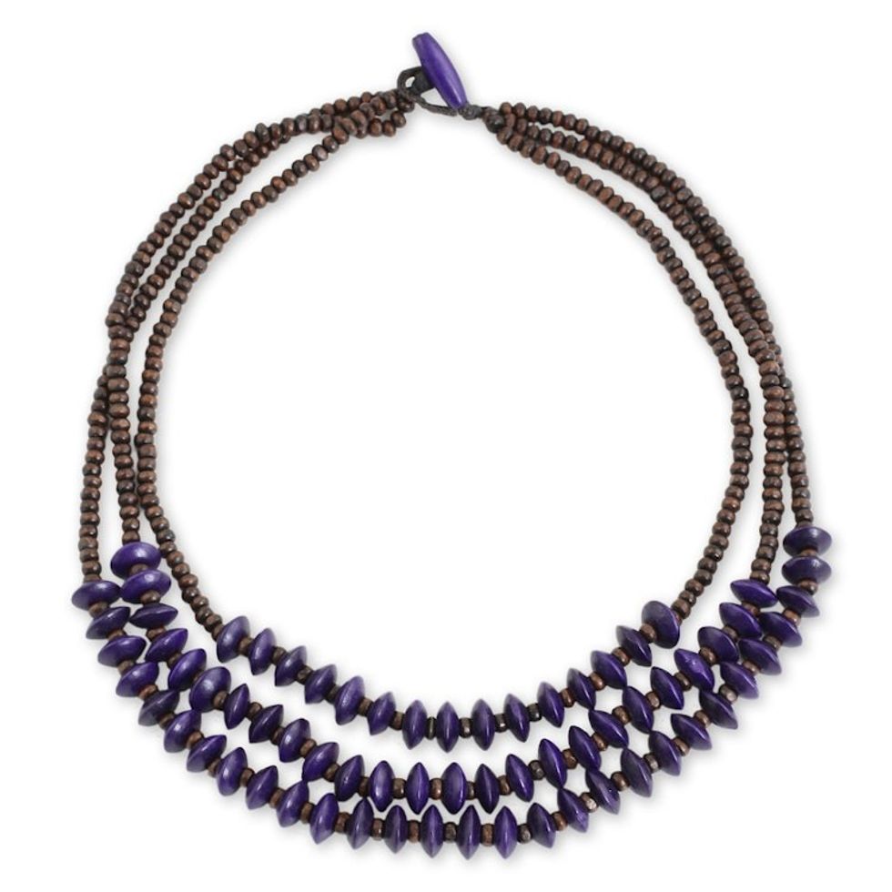 Artisan Crafted Purple Wood Beaded Waterfall Necklace 'Happy Purple Brown' Item ID: 2671802242