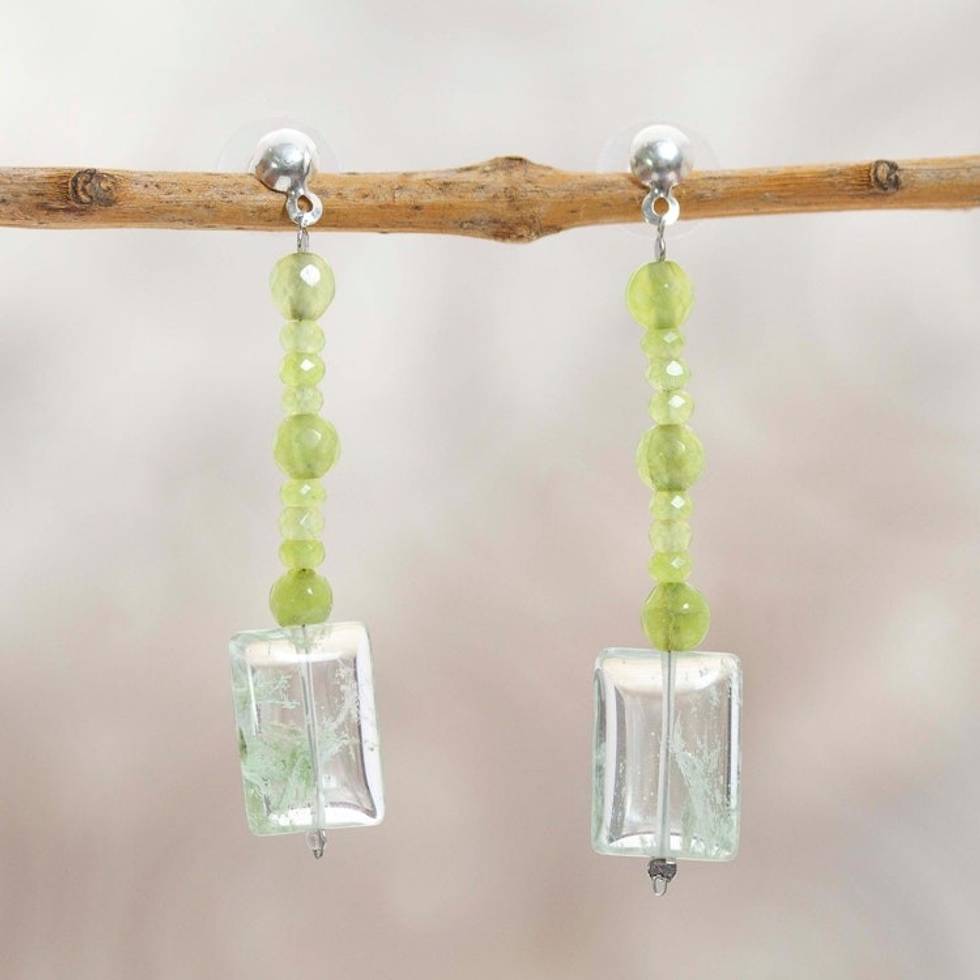 Artisan Crafted Quartz and Agate Earrings 'Sea Moss' Item ID: 2671807979