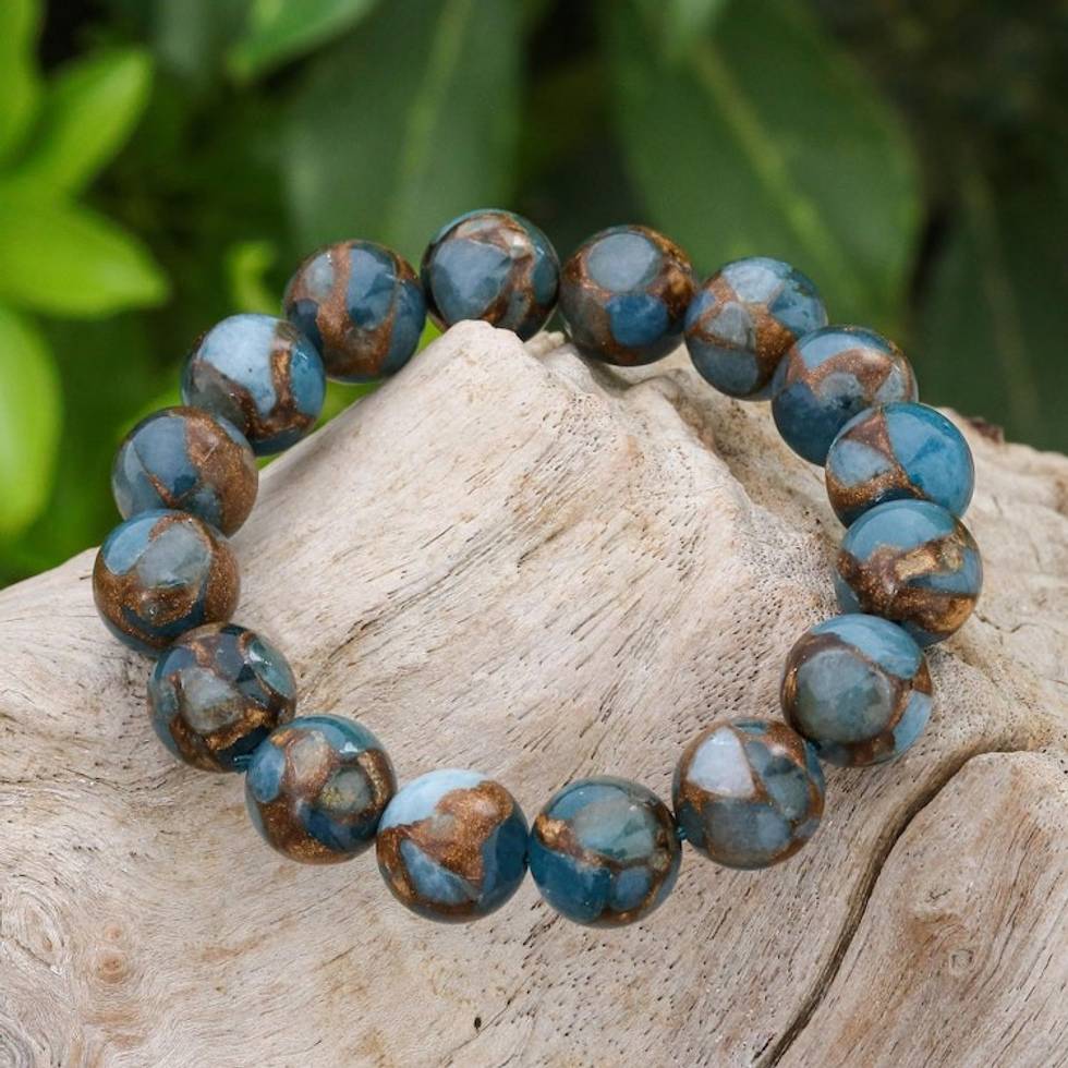 "Designed for people on the go, Arshad Ullah's charming stretch bracelet slips on and off your wrist with ease. The Thai artisan hand strings blue-brown quartz beads along a durable elastic cord, which makes the bracelet perfect for busy days."