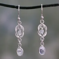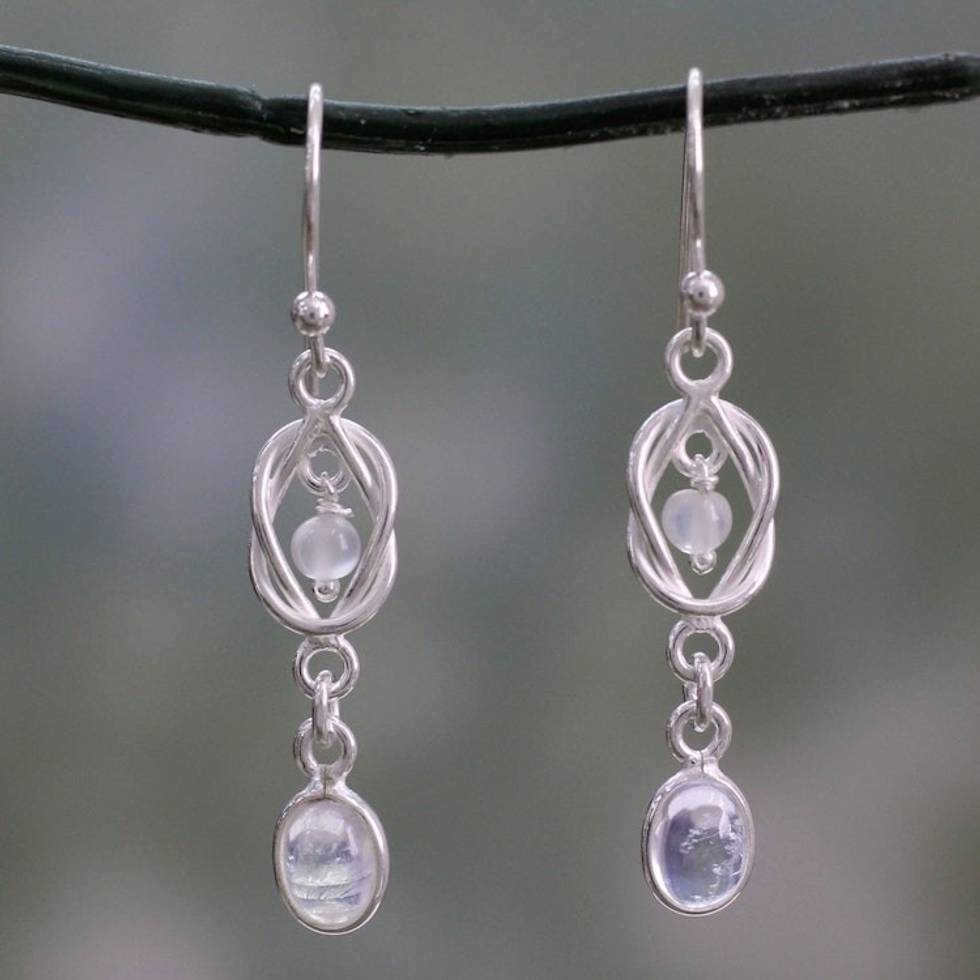 Artisan Crafted Rainbow Moonstone and Silver Earrings 'Moonlight Knot' Item ID: 2671793610
