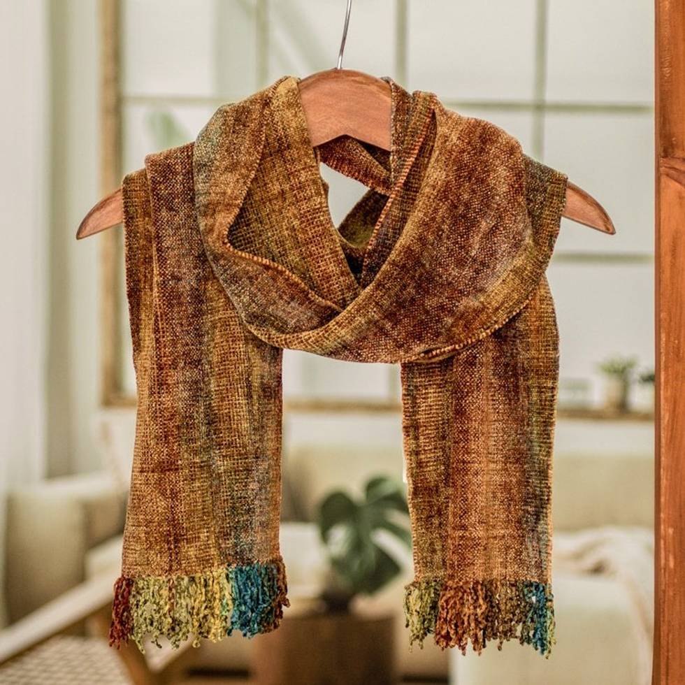 Artisan Crafted Rayon Chenille Scarf from Central America 'Autumn Breeze' Item ID: 2671780049