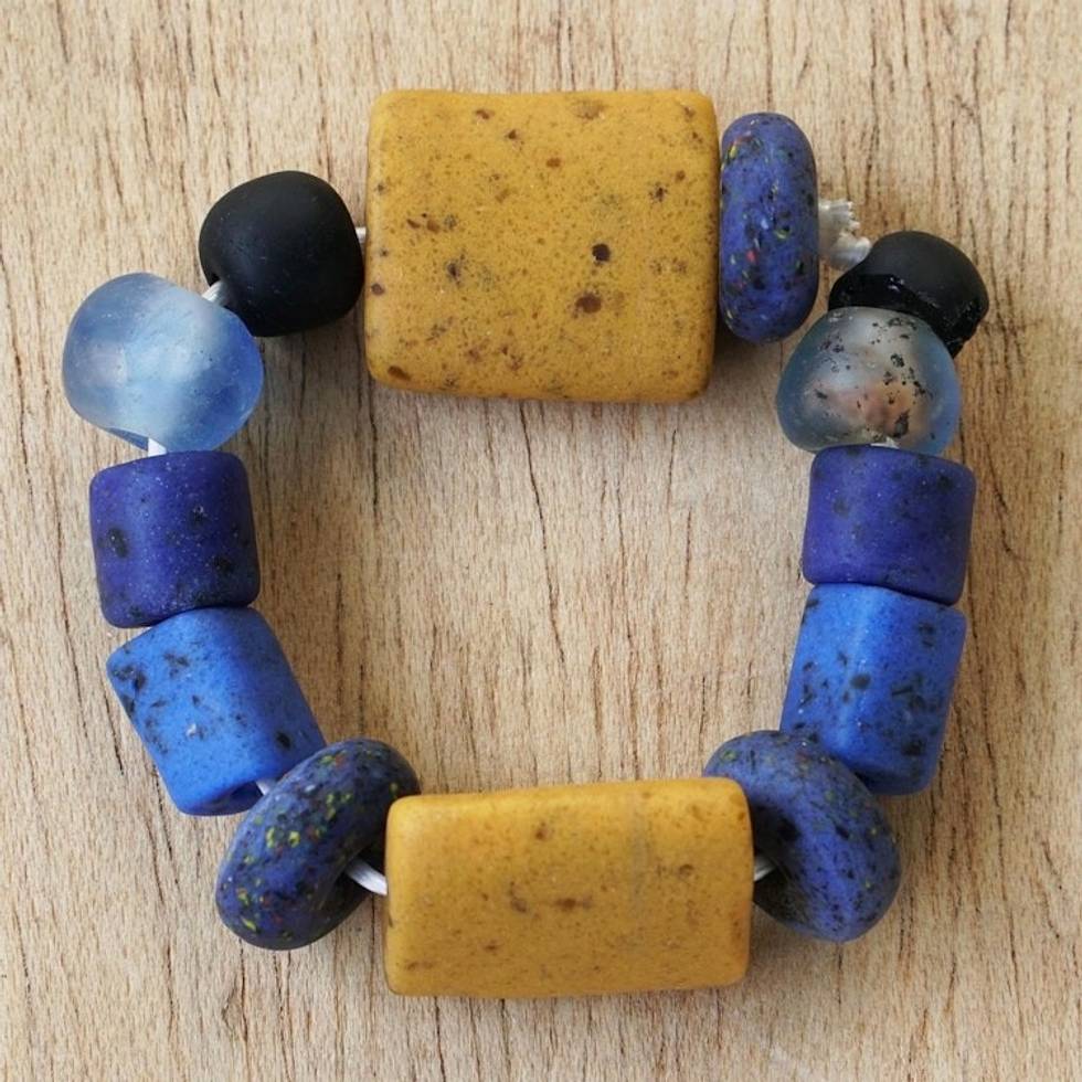Artisan Crafted Recycled Glass Beaded Bracelet 'Electric Spark' Item ID: 2671804001