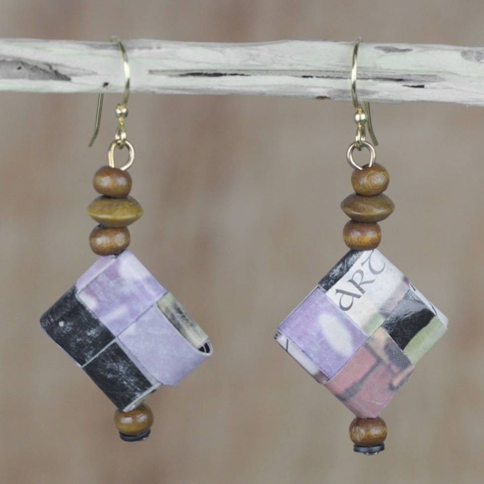 Artisan Crafted Recycled Paper and Wood Earrings from Ghana 'Good-Natured' Item ID: 2671803508
