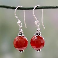 Artisan Crafted Red Agate and Sterling Silver Hook Earrings 'Glorious Crimson' Item ID: 2671793924