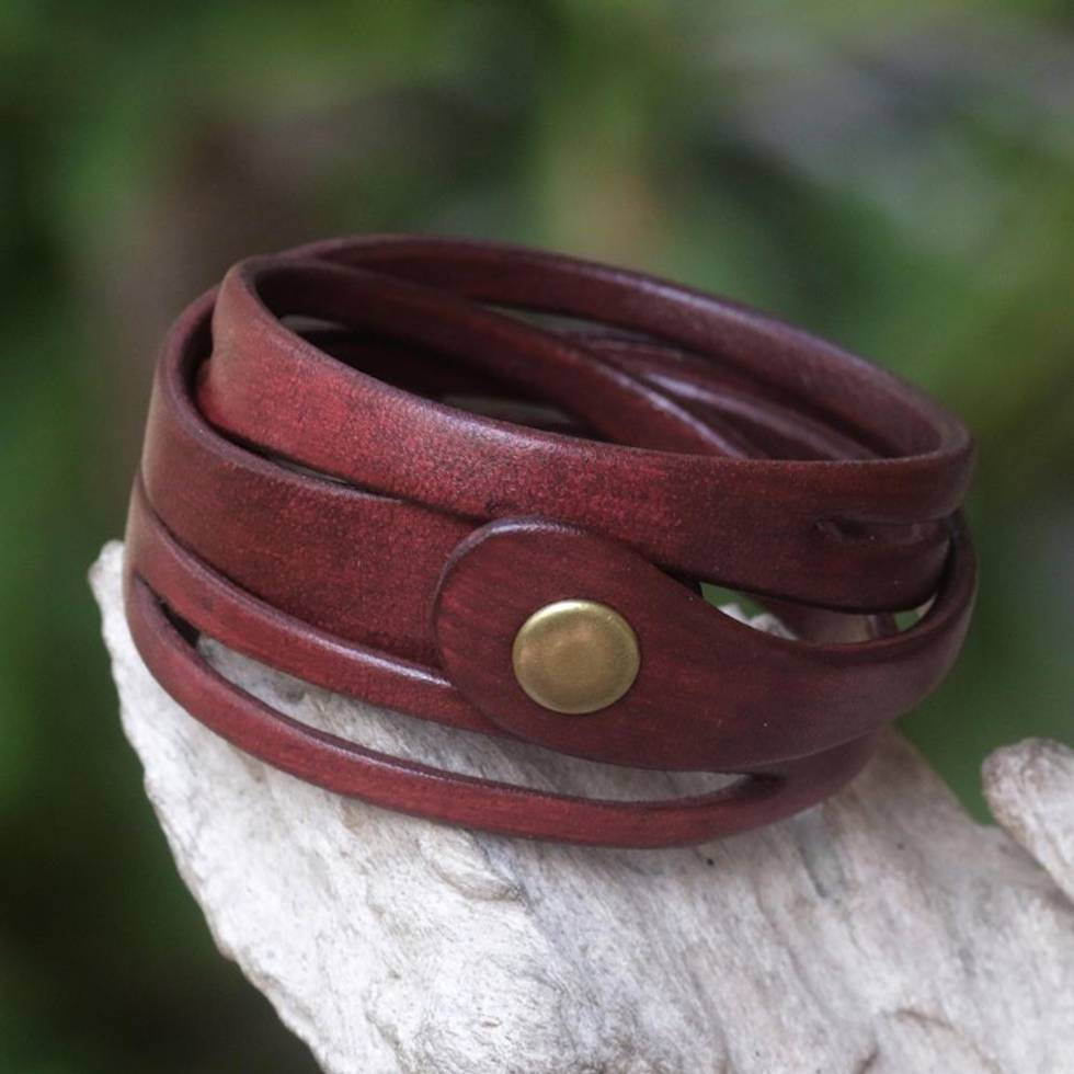 Artisan Crafted Red Leather Wrap Bracelet 'Crimson Whisper' Item ID: 2671820897