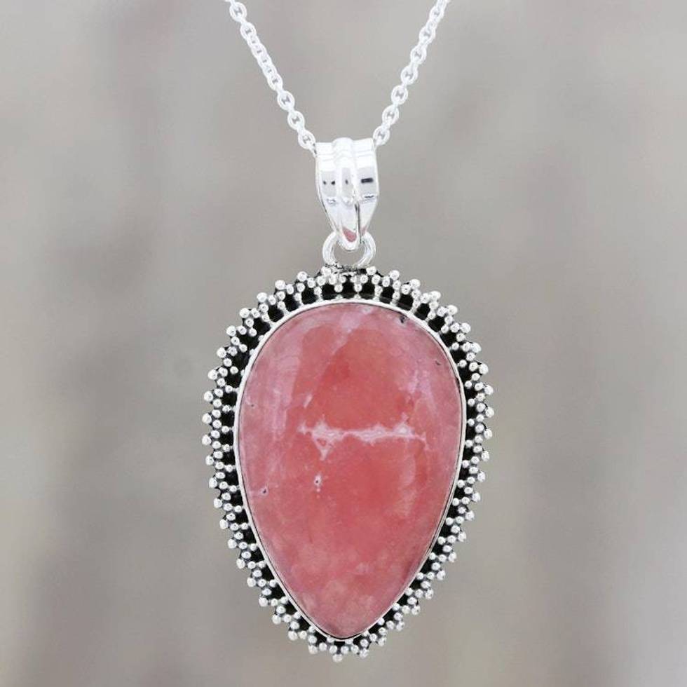 Artisan Crafted Rhodochrosite Pendant Necklace 'Enthralling' Item ID: 2676664441