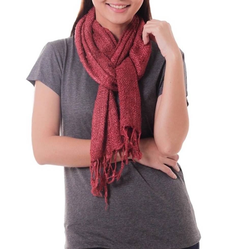 Artisan Crafted Rose Pink Woven Silk Scarf with Fringe 'Essential Rose' Item ID: 2671801875