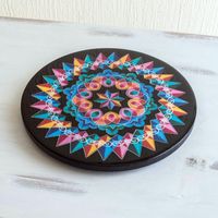 Artisan Crafted Round Wood Trivet 'Costa Rican Mandala in Black' Item ID: 2669934746