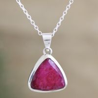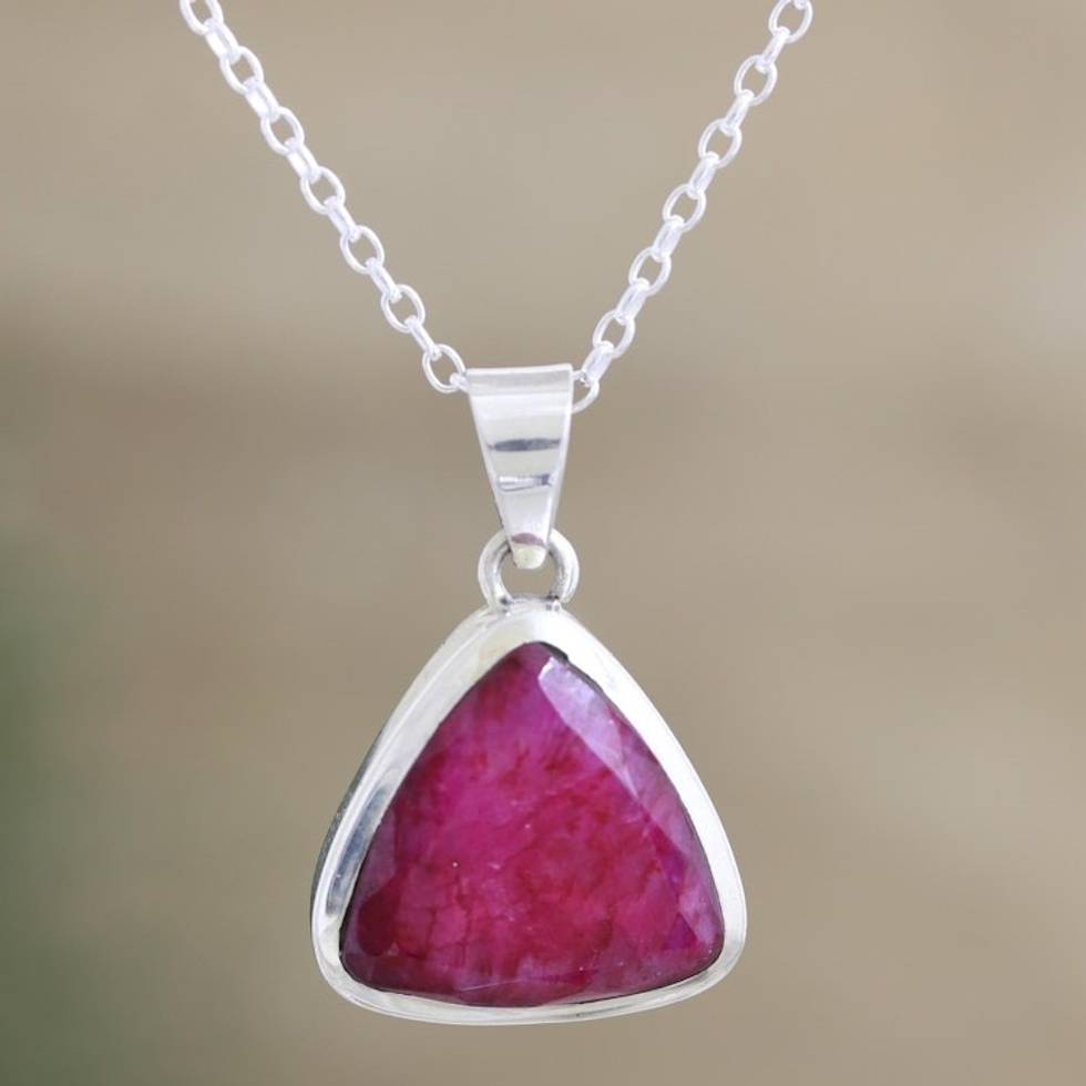 Artisan Crafted Ruby and Sterling Silver Pendant Necklace 'Illuminated in Love' Item ID: 2671622565