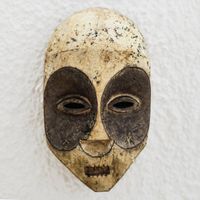 "This spooky mask is the creation of Ghana's Emmanuel Austin Ankude. Crafted from sese wood, the mask is sanded smooth, then painted in neutral hues of brown, cream, and grey. The artisan calls the mask Bakongo, after a Bantu ethnic group who inhabit the Republic of the Congo, the Democratic Republic of the Congo, Angola, and Gabon."