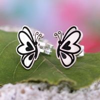Artisan Crafted Silver Butterfly Theme Button Earrings 'Butterfly Sketch' Item ID: 2671697822