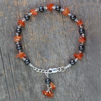 Artisan Crafted Silver Hematite and Carnelian Bracelet 'Night Fire' Item ID: 2671794103