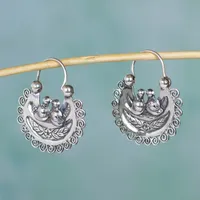 Artisan Crafted Silver Mazahua Style Sterling Hoop Earrings 'Mazahua Lovebirds' Item ID: 2669927018