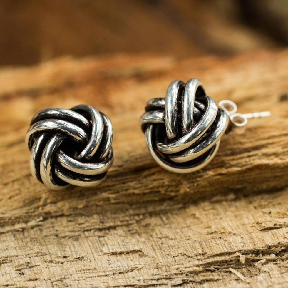 Artisan Crafted Silver Stud Earrings 'Double Love Knot' Item ID: 2669927257