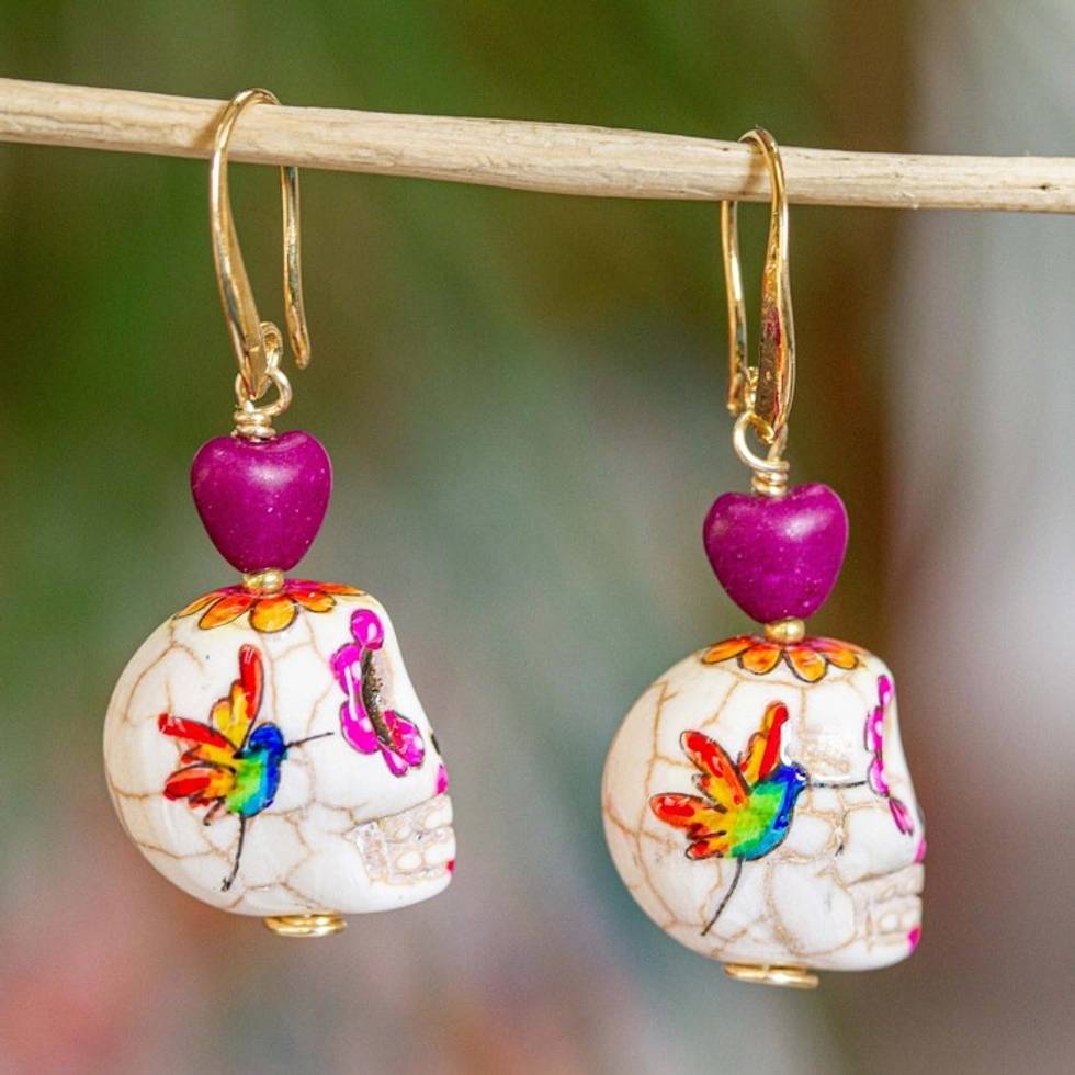 Artisan Crafted Skull Earrings 'Calavera Hummingbird' Item ID: 2669931418