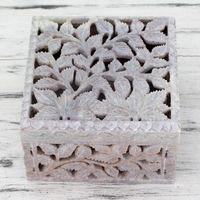 Artisan Crafted Soapstone Jali Jewelry Box 'White Ivy' Item ID: 2669925548