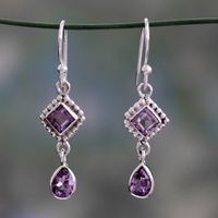 Artisan Crafted Sterling Silver and Amethyst Earrings 'Purple Spark' Item ID: 2671621371