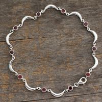Artisan Crafted Sterling Silver and Garnet Ankle Jewelry 'Crescent Moons' Item ID: 2669925475