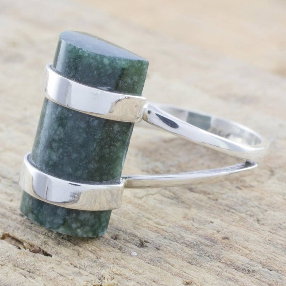Artisan Crafted Sterling Silver and Jade Cocktail Ring 'Sweet Maya' Item ID: 2671778479