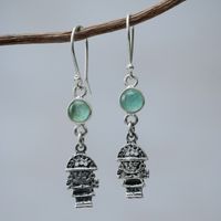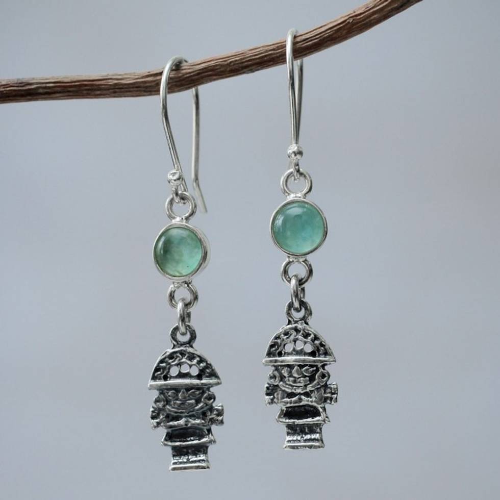 Artisan Crafted Sterling Silver and Opal Hook Earrings 'Inca Tumi' Item ID: 2671690392