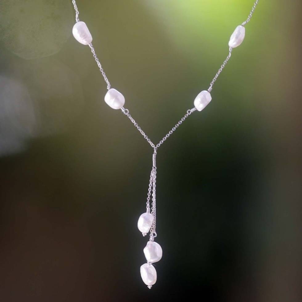 Artisan Crafted Sterling Silver and Pearls Y Necklace 'Moonlit Dancer' Item ID: 2671478942