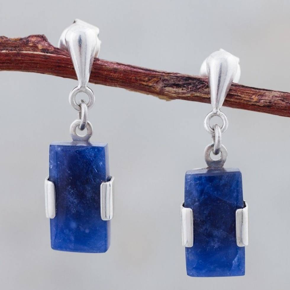 Artisan Crafted Sterling Silver and Sodalite Post Earrings 'Hug' Item ID: 2671691523